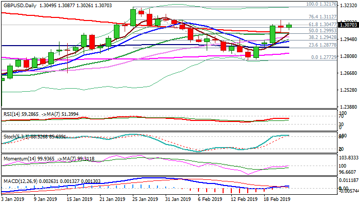 Strong three-day recovery rally probed above 1.31 barrier and peaked at 1.3109 on Wednesday, but was unable to hold gains.