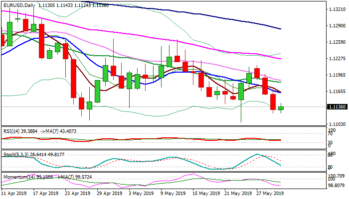 Bears are taking a breather and consolidating within narrow range in early Thursday’s trading, following three-day fall after upside rejection at 1.1215 and failure to close above falling 30SMA.