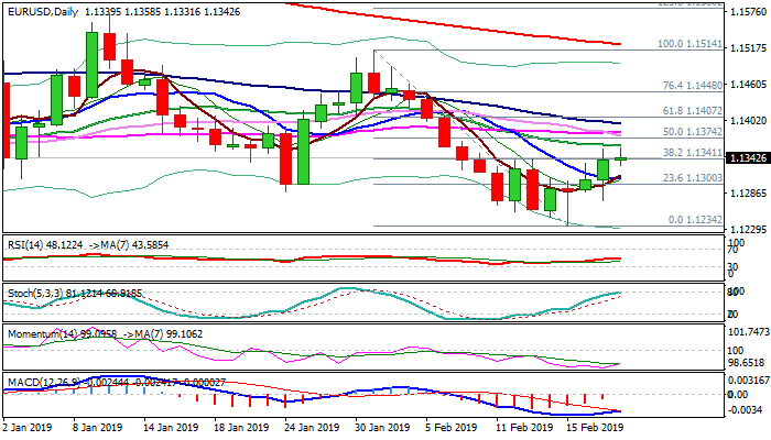 Extended dips would be allowed down to 10SMA (1.1309) to keep bullish bias in play, while close below would generate fresh bearish signal.
