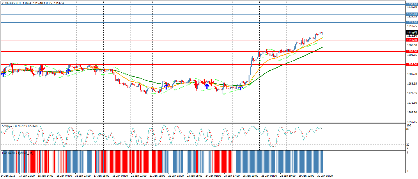 تداول معدن الذهب في حدود 70 نقطة مع إتجاه صاعد حيث إفتتح عند 1311.72 وأغلق عند 1314.88 و وصل لأعلى سعر عند 1315.32 كان أدنى سعر للذهب عند 1310.56 نجح المعدن في الثبات أعلى نقطته المحورية عند 1315 .