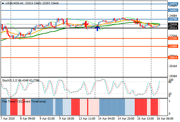 تداول مؤشر الداوجونز اليوم في  حدود 800 نقطة مع إتجاه هابط حيث إفتتح  عند 23894 و أغلق عند 23330  ووصل لأعلى سعر عند 23946  أدنى سعر للزوج عند 23101  ،  و نجح الزوج في الثبات اعلى من نقطته المحورية عند 23110