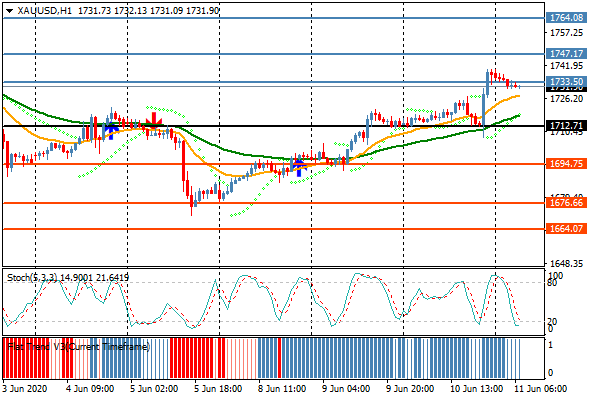 تداول معدن الذهب اليوم في حدود 320 نقطة مع إتجاه صاعد حيث إفتتح عند 1712.78 و أغلق عند 1737.86 ووصل لأعلى سعر عند 1739.91 أدنى سعر للزوج عند 1707.21، و نجح الزوج في الثبات أعلي من نقطته المحورية 1712