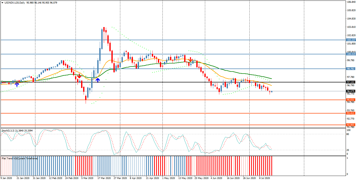 مازال مؤشر الدولار يعاني اسفل نقطته المحورية 97.15 ويزيد من الضغوطلت عليه تجنب المستثمرين له لإرتفاع شهية المخاطرة بالإضافة إلى ثباته أسفل 61.8 فيبوناتشي كما يتداول بشكل سلبي على كل المؤشرات ويضغط عليه تواجده أسفل المتوسطات السعرية وتقاطع المتوسطات السعرية لأسفل بالإضافة إلة سلبية مؤشرات الفلات ترند والأي إم أيه ولذلك يرجح إستمرار الأداء السلبي بشرط كسر 95