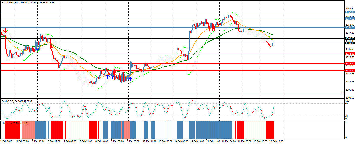 تداول معدن الذهب في حدود 120 نقطة مع إتجاه عام هابط حيث إفتتح عند 1345.77 و أغلق عند 1338.71 و وصل لأعلي سعر عند 1348.18 كان أدني سعر للذهب عند 1336.54 نجح المعدن في الثبات أسفل نقطته المحورية عند 1343و تداول المعدن اليوم بسلبية اسفل نقطتة المحورية 1343, وتداول الزوج اسفل المتوسطات السعرية 20 55 , وعلى من تداوله أعلى مستوي 38.2 فيبوناتشي ( للموجة الهابطة 1790بتاريخ أكتوبر 2012 ) , ومن ايجابية السعر علي مؤشر الستوكاستك بتقاطع خطوطه لاعلى, و سلبية المعدن على مؤشر السار و سلبية السعر علي مؤشر الإي إم أيه , و سلبيته علي مؤشر الفلات ترند و لذلك نرجح الاتجاه الهابط اليوم