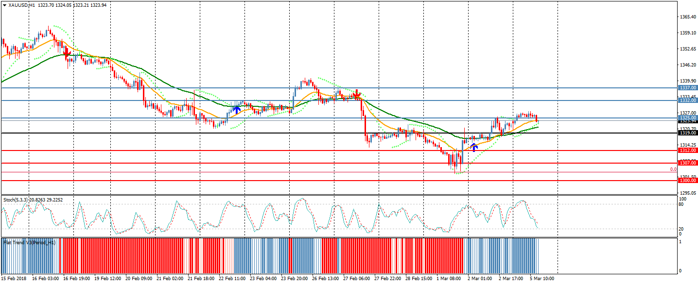 تداول معدن الذهب في حدود 90 نقطة مع إتجاه عام صاعد حيث إفتتح عند 1323.59 و أغلق عند 1325.55 و وصل لأعلي سعر عند 1327.75 كان أدني سعر للذهب عند 1320.34 نجح المعدن في الثبات أعلى نقطته المحورية عند 1319 .