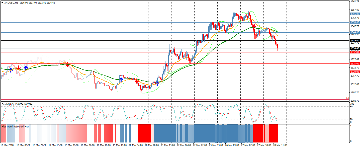 تداول معدن الذهب في حدود 150 نقطة مع إتجاه عام صاعد حيث إفتتح عند 1345.16 و أغلق عند 1339.72 و وصل لأعلي سعر عند 1347.00 كان أدني سعر للذهب عند 1332.81 نجح المعدن في تحقيق مستهدفه الثاني عند 1332 .