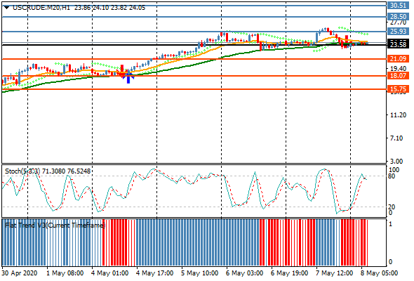 تداول النفط اليوم في حدود 380 نقطة مع اتجاه هابط افتتح  عند 24.32 و أغلق عند 23.37 ووصل لأعلى سعر عند 26.71   أدنى سعر للزوج عند 22.93 و نجح الزوج في الثبات بالقرب من  نقطته المحورية عند 23.60