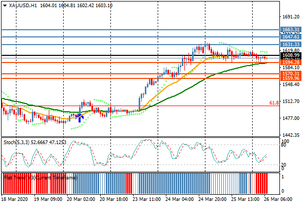 و يتداول المعدن اليوم بحياد بالقرب من أعلى نقطته المحورية 1608 ، ويتداول أعلى المتوسطات السعرية 20 55 ، ومن تداوله أسفل مستوى 61.8 فيبوناتشي ( للموجة الهابطة من 1790 بتاريخ أكتوبر 2012) ، و إيجابية السعر على مؤشر الستوكاستك بتقاطع خطوطه لاعلى ,و سلبية الزوج على مؤشر السار ومن ايجابيته على مؤشر الإي إم أيه ، و سلبيته على مؤشر الفلات ترند ولذلك نرجح الإتجاه المحايد اليوم