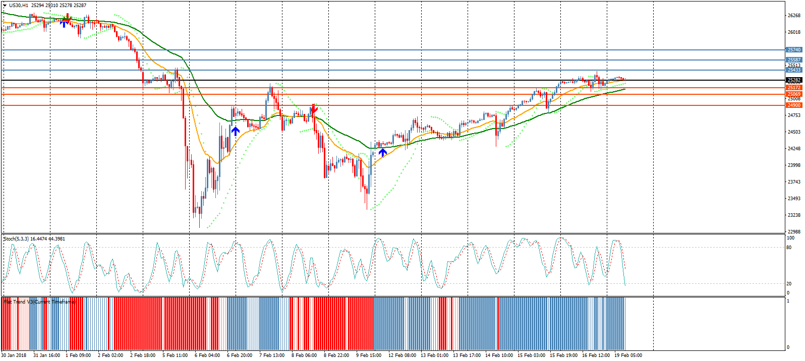 تداول مؤشر الداو جونز في حدود 300 نقطة مع إتجاه عام محايد فبدأ عند 25227 و أغلق عند 25233 و وصل لأعلي سعر عند 25422 كان أدني سعر للداو جونز عند 25112 و نجح المؤشر في الثبات أعلى نقطته المحورية عند 24900