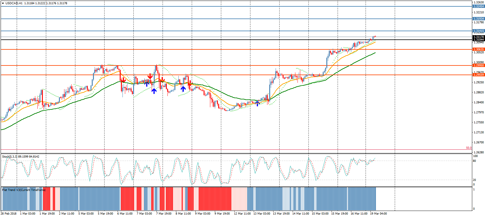 تداول زوج الدولار كندي في حدود 50 نقطة مع إتجاه عام صاعد حيث إفتتح عند 1.3047 و أغلق عند 1.3095 و و وصل لأعلي سعر عند 1.3098 و أدني سعر للزوج عند 1.3046 . و نجح الزوج في الثبات أعلى نقطته المحورية عند 1.3060