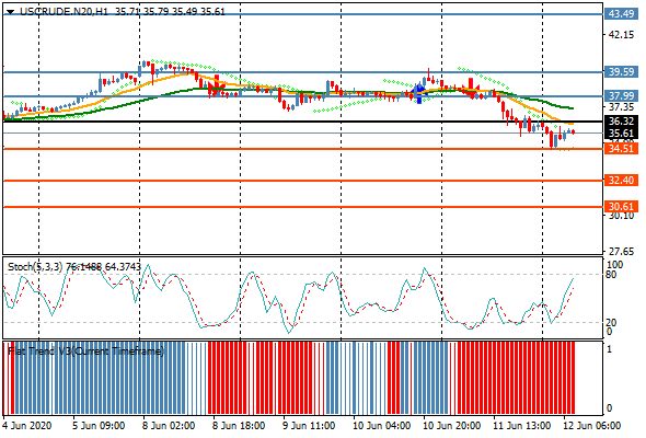 تداول النفط اليوم في حدود 370 نقطة مع اتجاه هابط افتتح عند 39.13 و أغلق عند 36.13 ووصل لأعلى سعر عند 39.13 أدنى سعر للزوج عند 35.39 و نجح الزوج في الثبات أسفل من نقطته المحورية عند 36.30