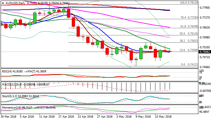 Close below 10SMA (0.7500) is needed to maintain fresh pressure and open way for further easing.