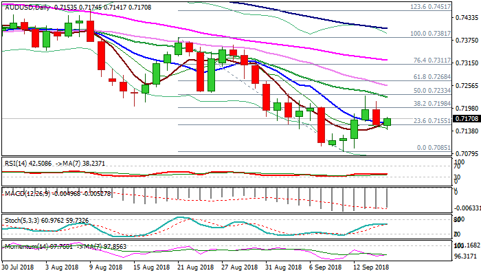 Initial bullish signal could be expected on break above 20SMA (0.7226), with extension above 0.7268 (Fibo 61.8% of 0.7381/0.7085) needed to confirm reversal and open way for stronger recovery.