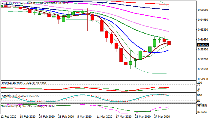 Extension below 0.6046 (Fibo 23.6% of 0.5509/0.6212) is seen as minimum requirement, with loss of psychological 0.60 level and 10DMA (0.5984) to generate firmer signal and expose pivotal support at 0.5944 (Fibo 38.2% of 0.5509/0.6212).