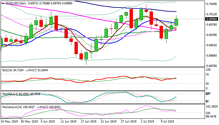 Fresh bulls cracked psychological 0.70 barrier, but faced strong headwinds that may delay extension towards key targets at 0.7021 (100DMA) and 0.7035 (daily cloud top / weekly cloud base).
