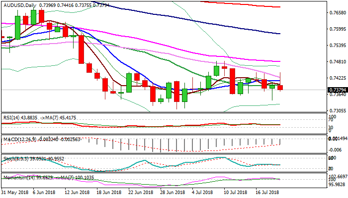 Near-term risk turns towards pivots at 0.7360 (11/12 July lows) and 0.7343 (Wednesday’s spike low) break of which would open key support at 0.7310 (02 July low, the lowest from 01 Sep 2017).