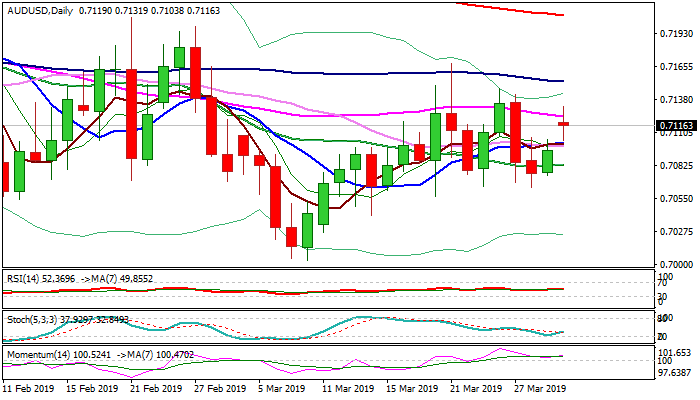 The Aussie dollar extends recovery above 0.71 handle on Monday, boosted by renewed risk appetite.