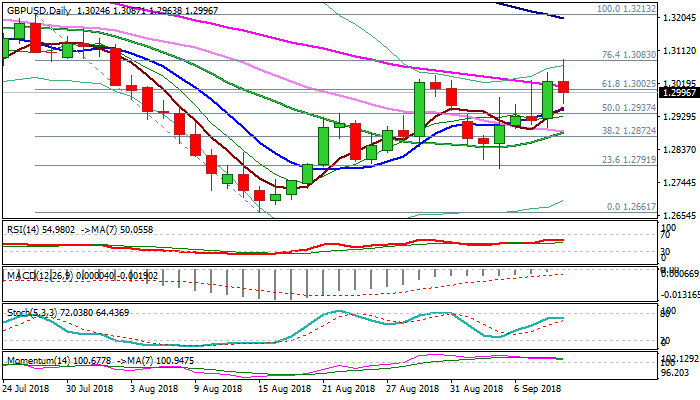 The pair extended weakness to new daily low at 1.2963 on soured near-term sentiment, despite better than expected UK jobs data (avg. earnings rose 2.6% in July vs 2.4% f/c while jobless claims fell below expectations in Aug (8.7K vs 10.0K f/c).