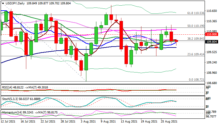 Clear break of 100 DMA would open way towards last week’s low (109.41) and more significant Aug 16-17 double-bottom at 109.11.