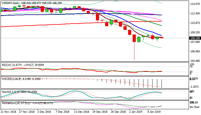 Daily Tenkan-sen turned south, while falling 10SMA (currently at 108.72) continues to cap and maintain bearish pressure.