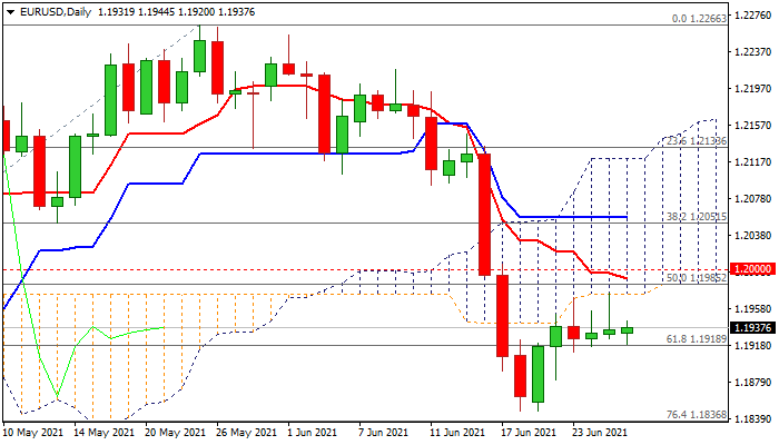 Violation of daily cloud base (1.1974) and break of other key barriers at 1.1994/1.2000 (200DMA / psychological) is needed to bring bulls in play and shift focus higher.