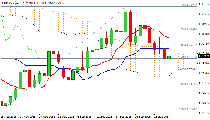 Cable moved higher and regained 1.30 handle in early Wednesday’s trading, after previous day’s bearish acceleration stalled at 1.2940.