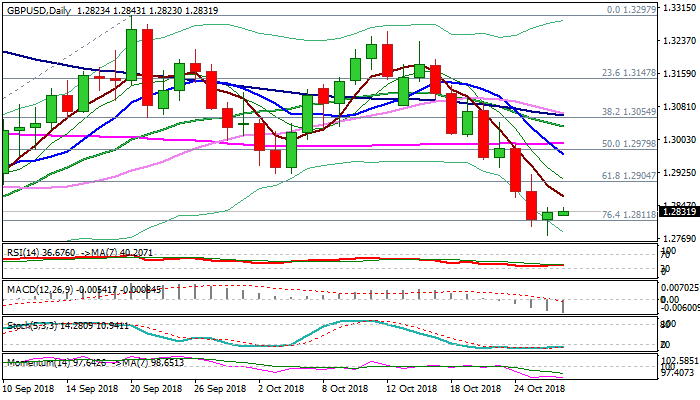 Cable is consolidating within narrow range above new nine-week low at 1.2776 in early Monday’s trading, ahead of release of UK autumn budget.