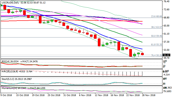 WTI oil holds in red on Wednesday and dipped below $51 handle, retracing over 61.8% of two-day $50.09/$52.53 recovery and signaling that corrective phase might be over.