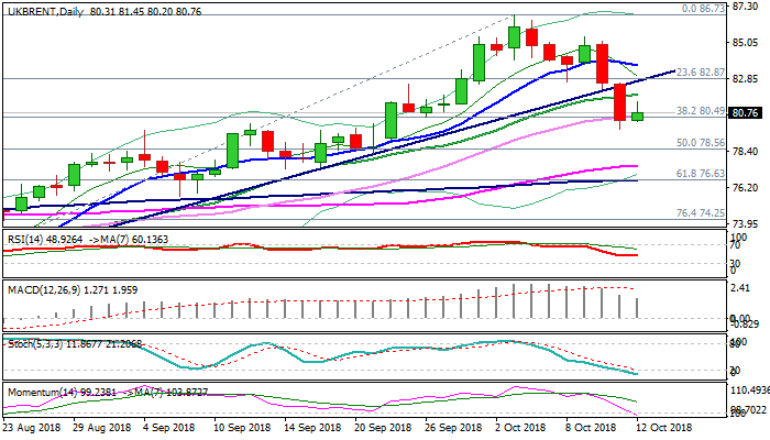 Weekly close below $80.50 would generate fresh bearish signal for extension of pullback from $86.73 (03 Oct high).