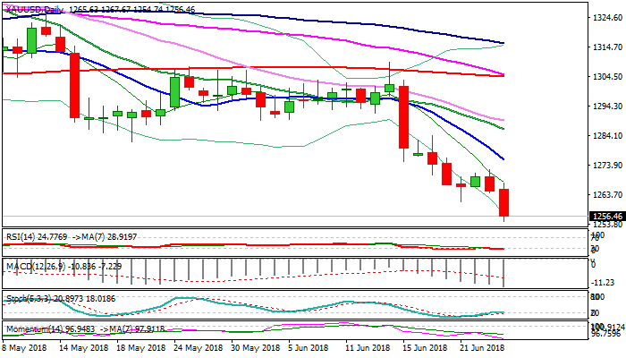 The yellow metal hit new over six-month low at $1255 on Tuesday, pressuring string support at $1252 (weekly cloud base), break of which would open way towards key med-term support at $1236 (12 Dec 2017 trough).