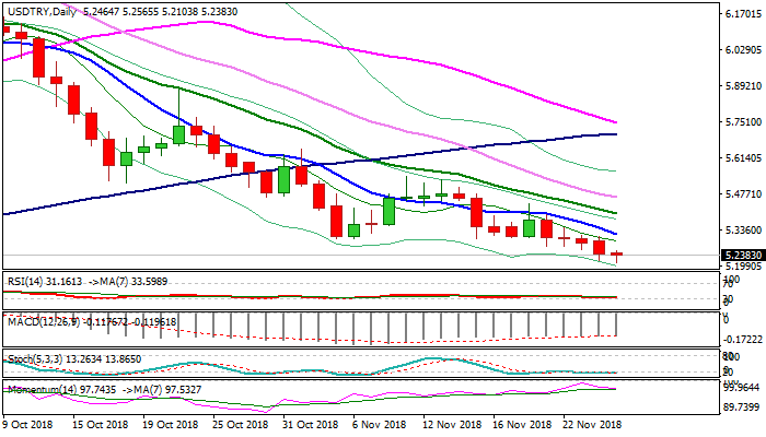 The USDTRY hit new nearly four-month low at 5.21 on Tuesday in extension of wave C (which commenced from 6.8379, 30 Aug lower top), of five-wave cycle from all-time high at 7.1074 (13 Aug).