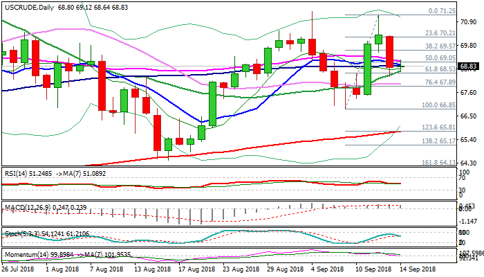 WTI oil holds within narrow consolidation above $68.34 low, posted after strong 2% fall previous day.