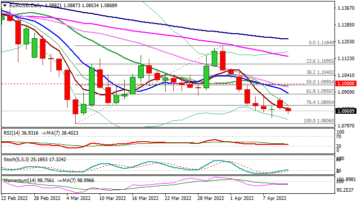Daily MA’s remain in full bearish setup although 14-d momentum edged higher but remaining in the negative territory and keeping the downside at risk.