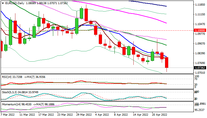 The Euro fell further on Monday, extending weakness below the temporary base that was formed at 1.0757 during past two weeks.