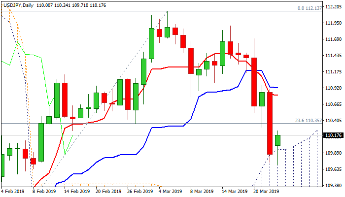 Eventual clear break of daily cloud top would open way towards next key supports at 109.25/15 (Fibo 38.2% of 104.59/112.13 / daily cloud base) violation of which will signal reversal.