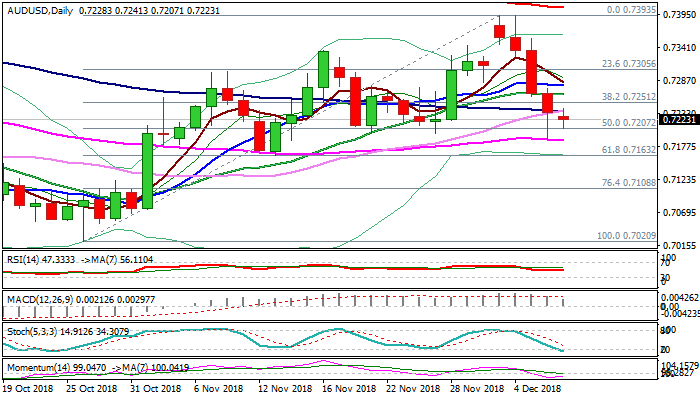 Daily cloud is narrowing and will twist next week that could attract fresh bears, which require break below 55SMA and pivotal Fibo support at 0.7163 (61.8% of 0.7020/0.7393) to confirm bearish continuation.
