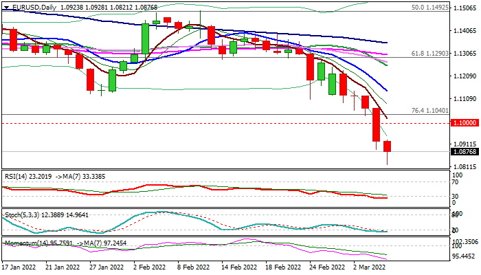 The sentiment remains negative, as growing uncertainty over Ukraine crisis and fears of massive impact on European economy from sanctions on Russia which resulted in skyrocketing energy prices, continues to boost risk aversion and keep the single currency under strong pressure.