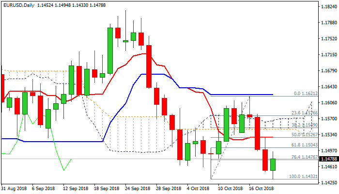 Bounce could be seen as positioning for fresh weakness, with initial resistance at 1.1497 (broken Fibo 61.8% of 1.1300/1.1815 ascend), capping the action for now and guarding 1.1523 barrier (falling 10SMA).