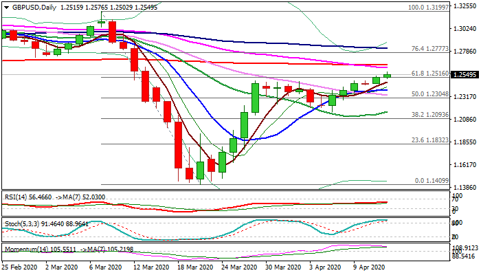 Cable extends gains above key Fibo barrier at 1.2516 (where Monday’s trading ended after registering eventual close above former high at 1.2485), hitting new highest levels since 13 Mar (1.2576 is so far European session high).