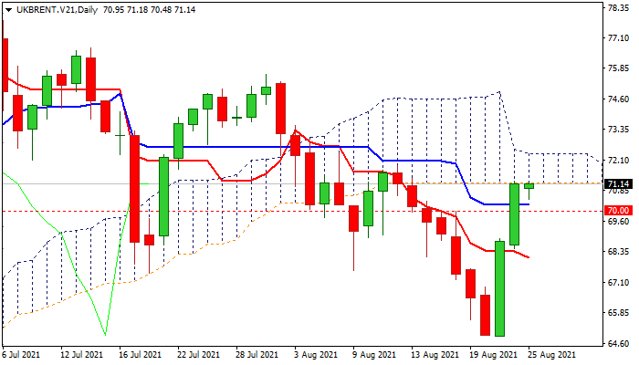 Fresh bulls started to lose traction on news that Mexico is going to resume production, disrupted by a fire on oil platform that resulted and smaller than expected fall in US crude stocks (API report), but expected to remain in play as global oil market is heavily in deficit.
