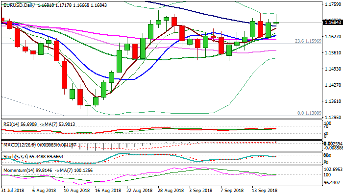 At the upside, plethora of resistances lays between 1.1733 (28 Aug high) and 1.1780 (Fibo 38.2% of 1.2555/1.1300 fall), with sustained break higher needed to generate stronger signal for continuation of recovery leg from 1.1300 (15 Aug low).