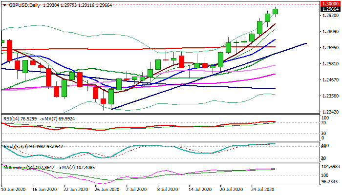 Cable extends steep bull-leg into ninth consecutive day and cracks barriers at 1.2970/76 (weekly cloud top /11 Mar high) the last obstacles on the way to psychological 1.30 resistance.