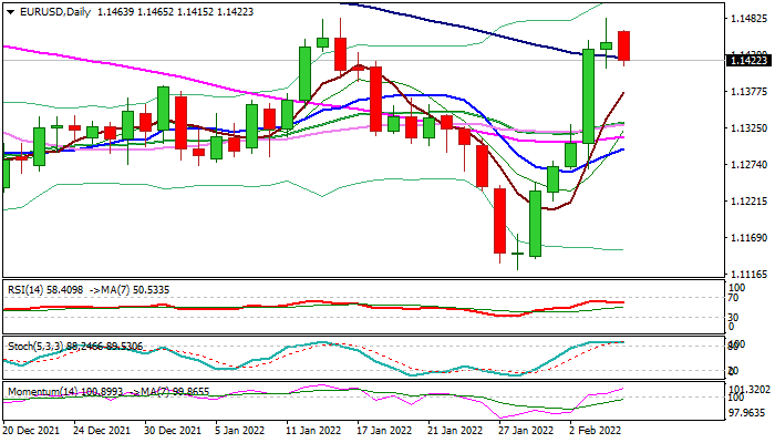 Bulls are taking a breather on Monday after steep five-day rally fully retraced 1.1482/1.1121 bear-leg.
