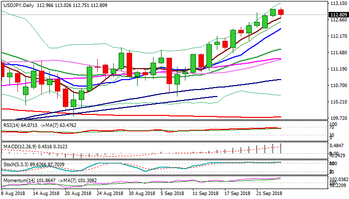 Dip-buying remains favored scenario for now, with initial support at 112.72 (rising 5SMA) and extended downticks to be contained by ascending 10SMA (112.40).