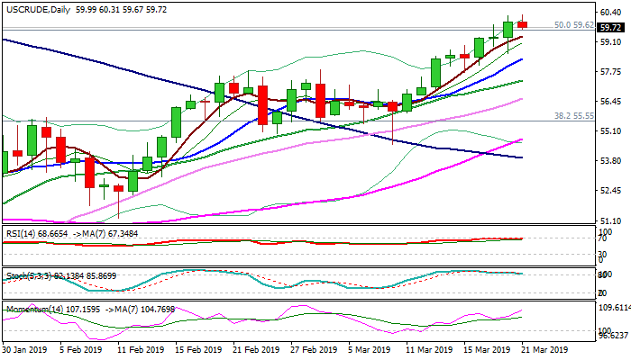 WTI oil consolidates under new four-month high at $60.31, following Wednesday’s bullish acceleration through psychological $60 barrier.