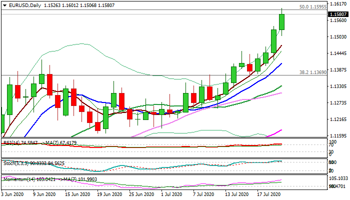 Bulls look for firm break above 1.1600 zone that would spark acceleration towards next target at 1.1822 (Fibo 61.8% of 1.2555/1.0635) as there are no obstacles en-route.