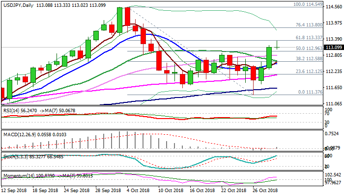 The pair hit three-week high at 113.33 on Wednesday, in extension of strong rally in past two days, after BoJ kept its ultra-low rates unchanged but emphasized downside risk, with focus on the inflation.