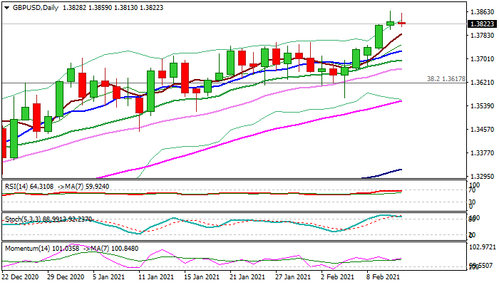 Bullish structure is expected to remain intact while the price action stays above 1.3758/28 (January’s high / rising 10DMA), while break here would put bulls on hold for deeper pullback.