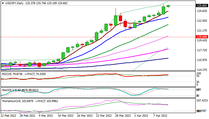 The USDJPY maintains bullish tone on Tuesday, following Monday’s 1% advance that peaked at 125.76, just ticks ahead of key barrier at 125.84 (2015 peak, the highest since 2002).