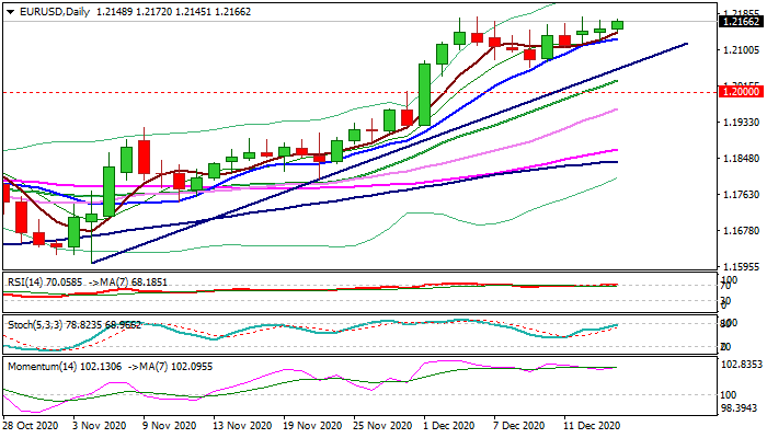 Rising 10DMA continues to track the advance and marks solid support at 1.2125, loss of which would weaken near-term structure and expose pivotal supports at 1.2064/58 (bull-trendline off 1.1602 Now low / Dec 9 correction low).